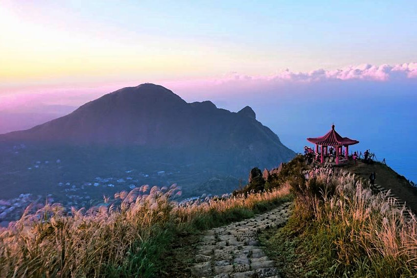 無耳茶壺山海拔 600 公尺,因遠遠望去像是一隻沒有壺耳的茶壺而得名。紅色涼亭搭配一旁繚繞的雲霧,真的會讓人誤以為置身在仙境之中。